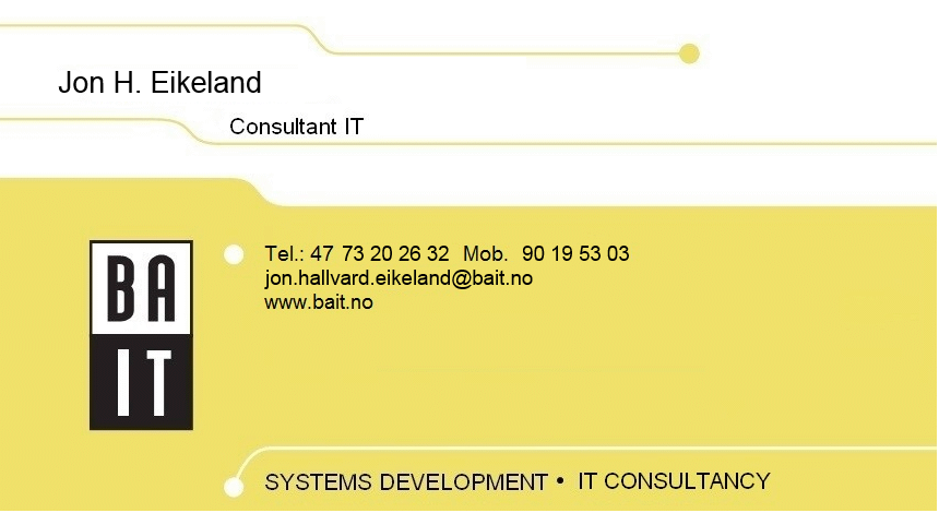 Bachelor i Ingeniørfag, IKT (HiST). Dag har tidligere arbeidet i BAS, Teknisk Data og Fjellanger Widerøe. Han startet opp BAIT AS i 1997.